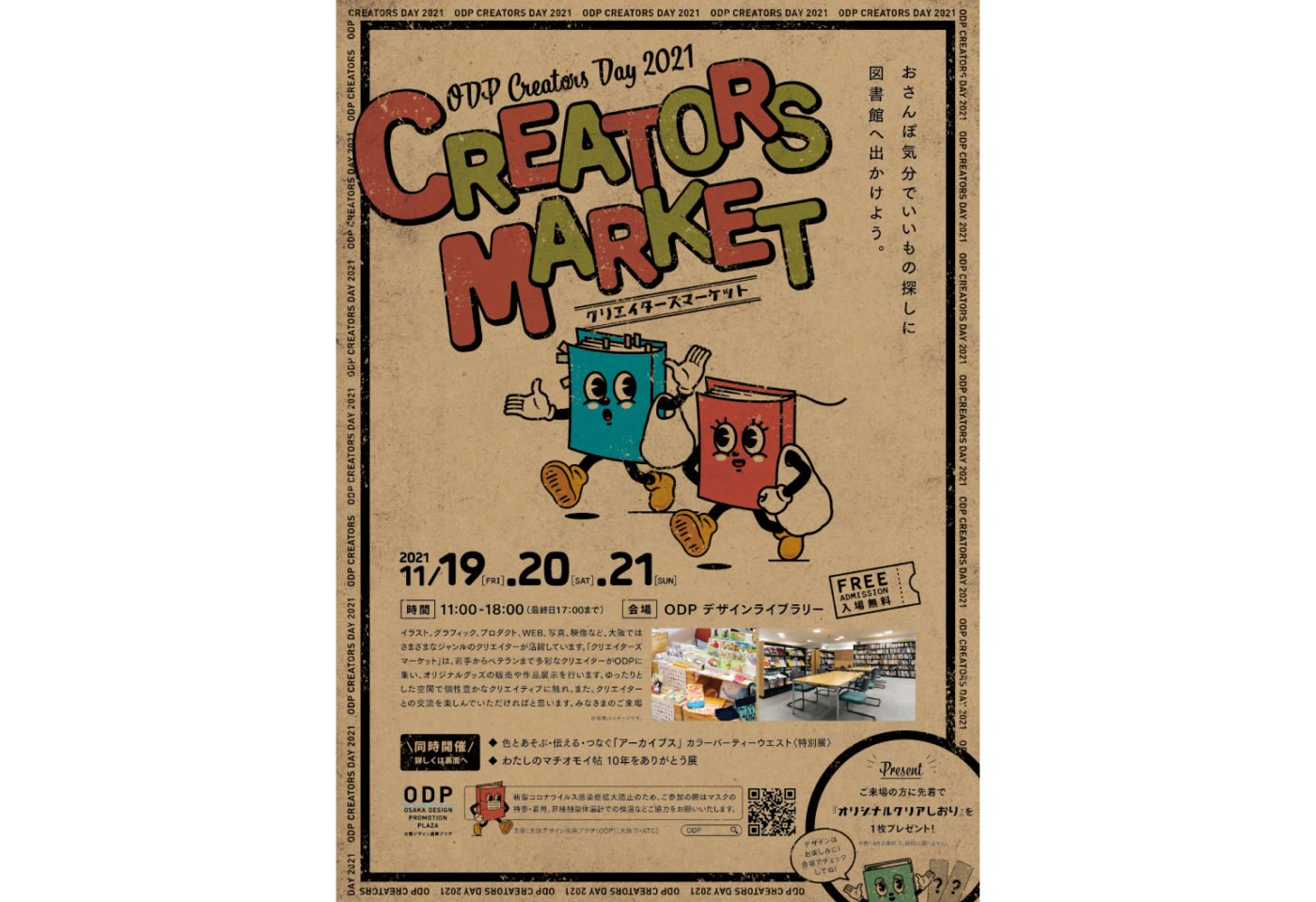 商業施設内の図書ルームで開催された「Creators Market」のイベントビジュアルおよびキャラクター・販促ツールデザインを制作いたしました。