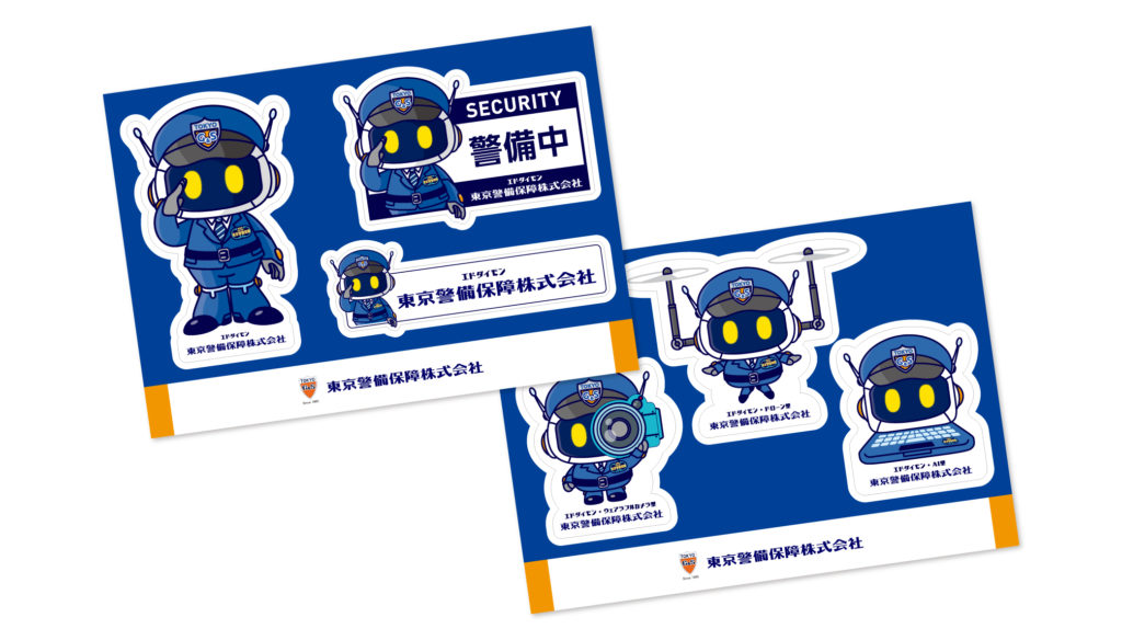 東京警備保障株式会社様のマスコットキャラクター、警備ロボット『エドダイモン』のキャラクターデザインを制作いたしました。本キャラクターは、社内のインナーブランディング強化と、展示会など対外的な販促広報ツールとしての活用を目的に制作されています。